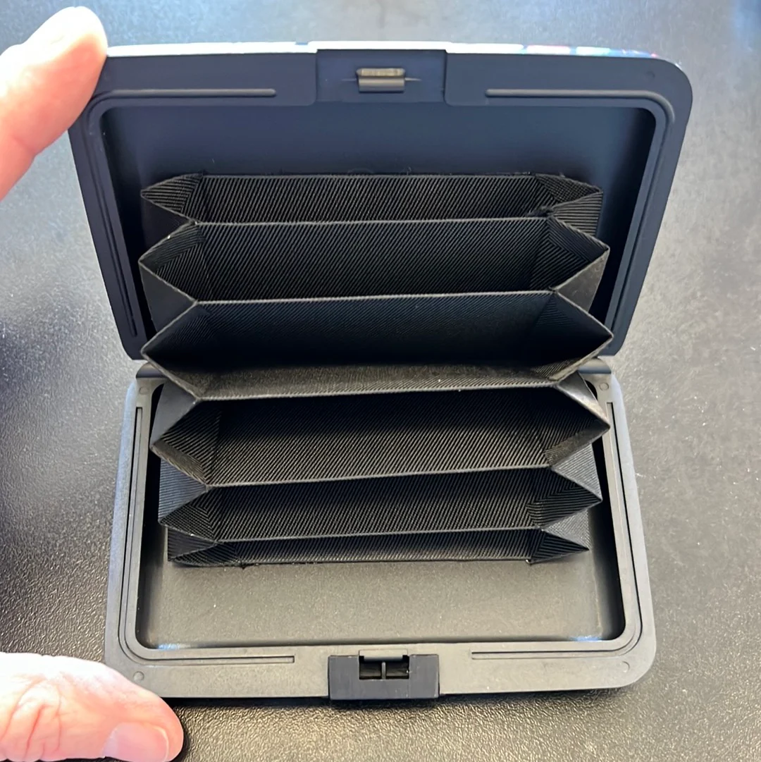 - case holds maximum of 6 cards – or an equivalent thickness of folded currency.
