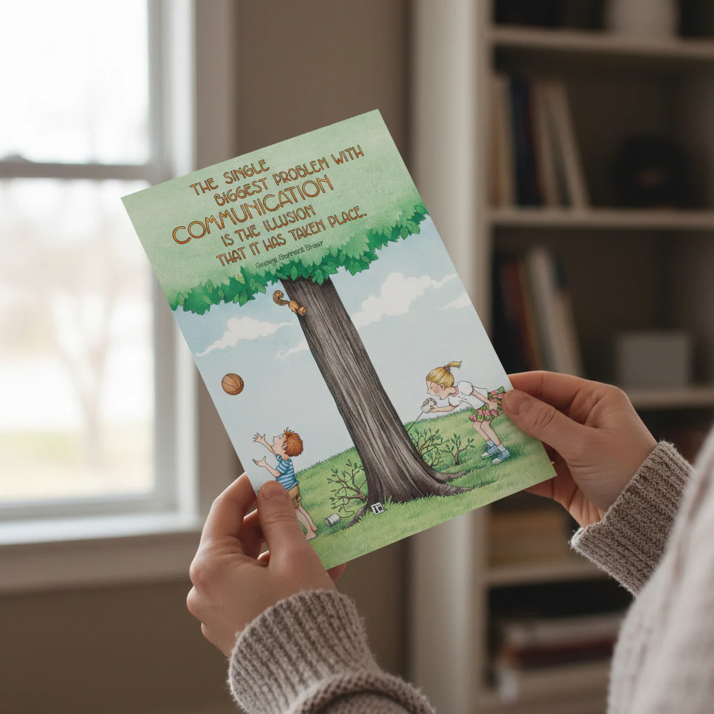 - Front reads:Ā The single biggest problem with communication is the illusion that it has taken place.